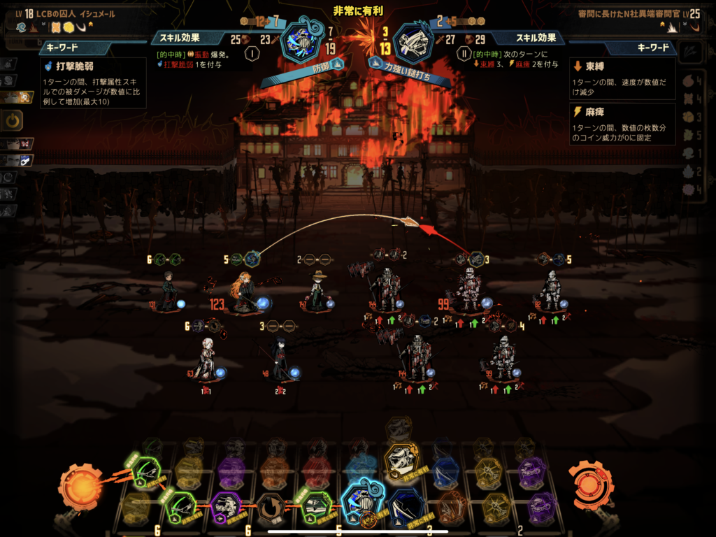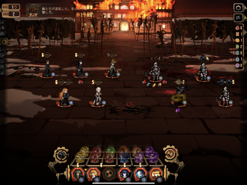 終盤で攻略wikiみて「出血」「火傷」を付与するキャラはまずい!と書いてあり「や、やばい」と焦った。