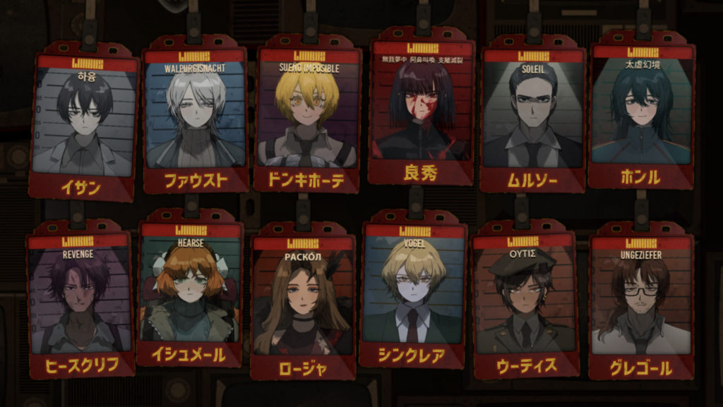 戦闘は下記の12名から5名を編成し行う。各キャラにはそれぞれ『人格』(異格とかカードの別verみたいなやつ)があり、キャラ固定ながらパーティーのバリエーションは豊富。「人格」は別世界のキャラたちって設定っぽい。